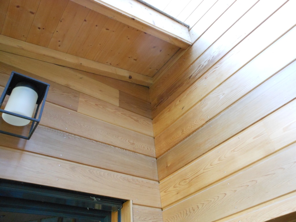 Le bardage en red cedar de cette maison avait été protégé avec une protection ultra-incolore spécifique. Voici quelques photos de l’état actuel du bois, 3 ans après :
