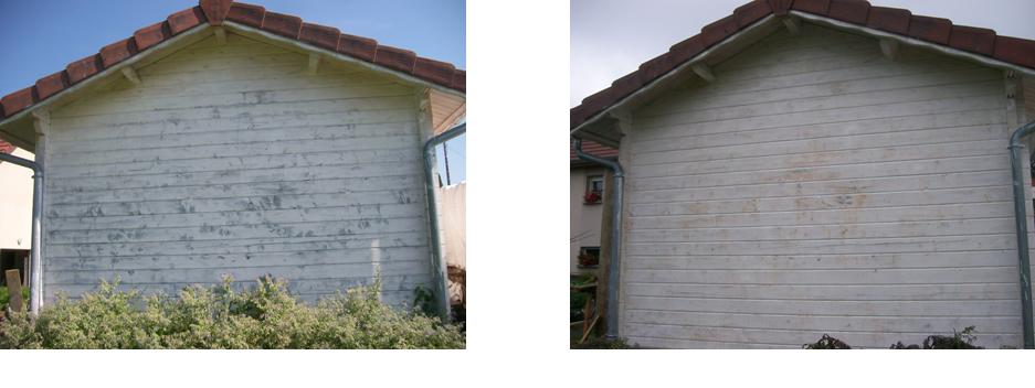 Lors de la rénovation, la façade sud a tout d’abord été dégrisée avec le dégrisant Coridégris’Pro (avant/après) :